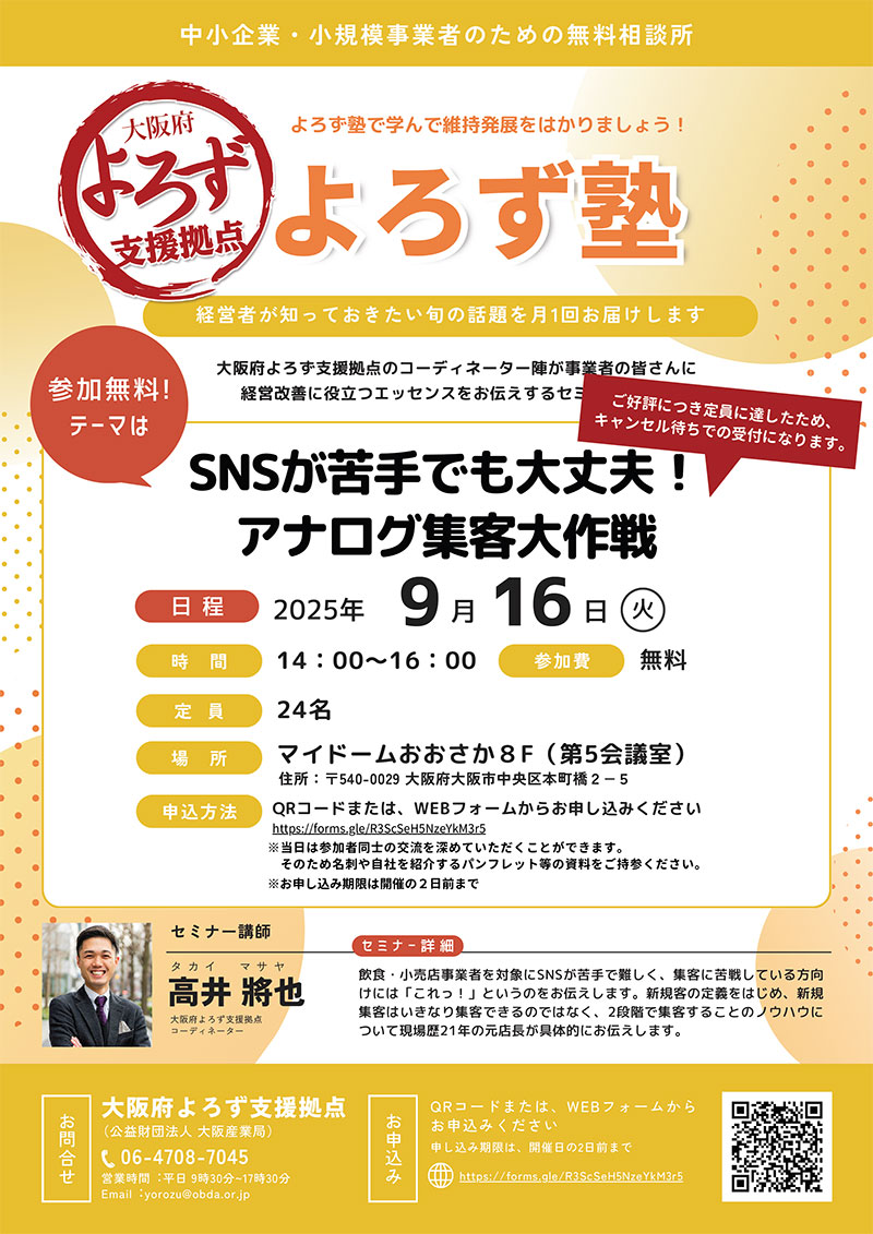 【2025年9月16日開催】SNSが苦手でも大丈夫!アナログ集客大作戦