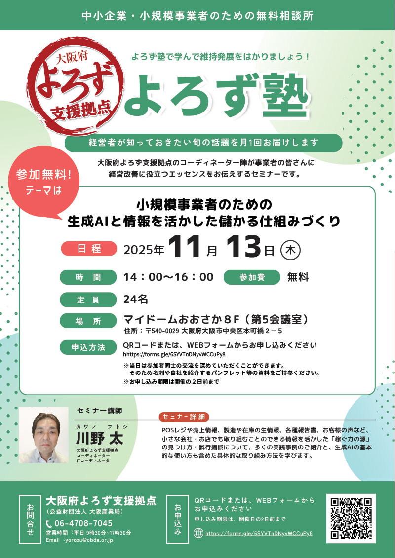 【2025年11月13日開催】小規模事業者のための生成AIと情報を活かした儲かる仕組みづくり