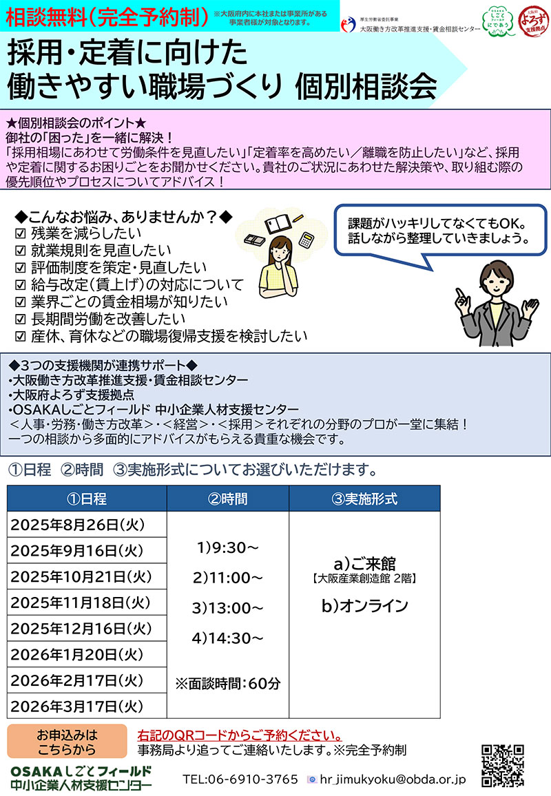 【2025年10月21日開催】採用・定着に向けた働きやすい職場づくり個別相談会