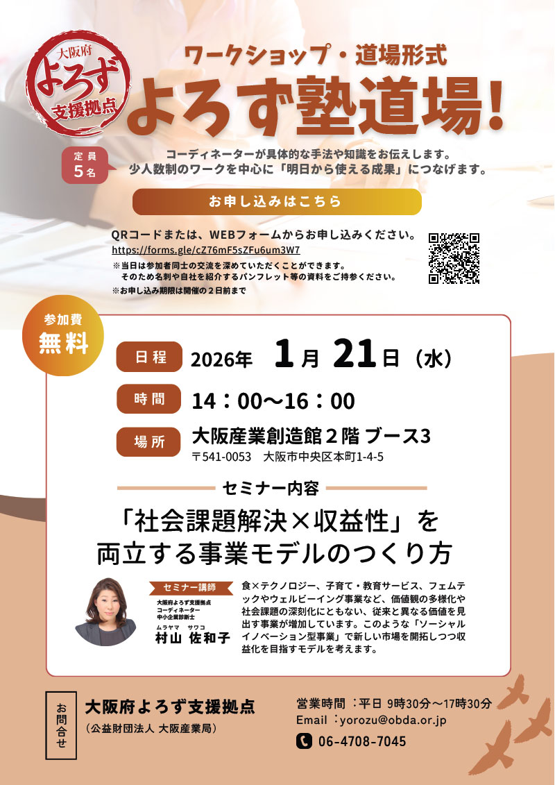 大阪府よろず支援拠点 TEL:06-4708-7045 Email:yorozu@obda.or.jp