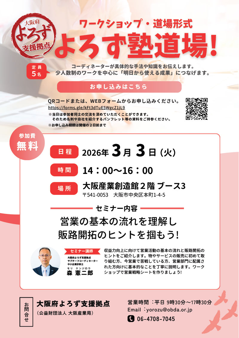 【2026年3月3日開催】営業の基本の流れを理解し販路開拓のヒントを掴もう!