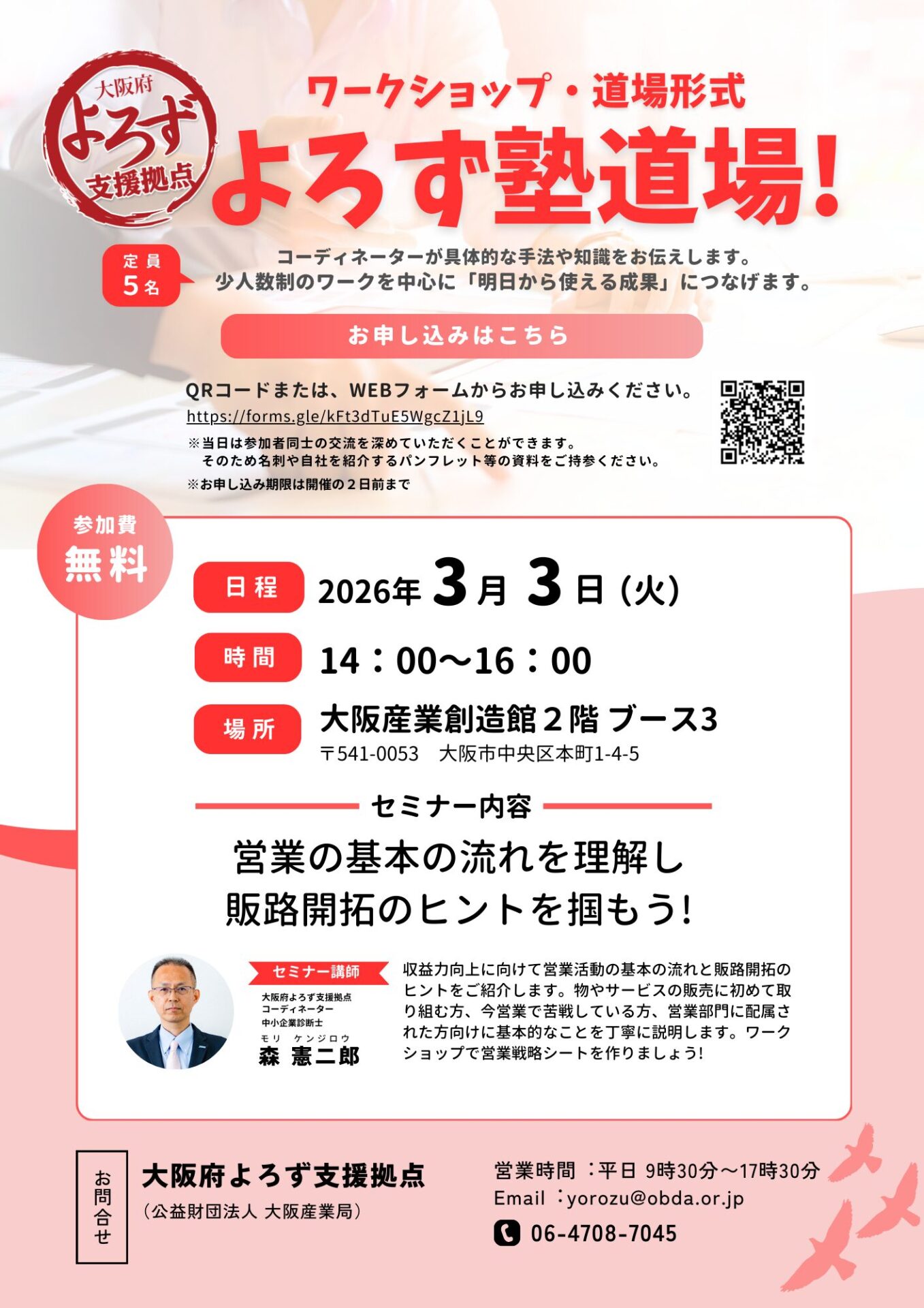 【2026年3月3日開催】営業の基本の流れを理解し販路開拓のヒントを掴もう!