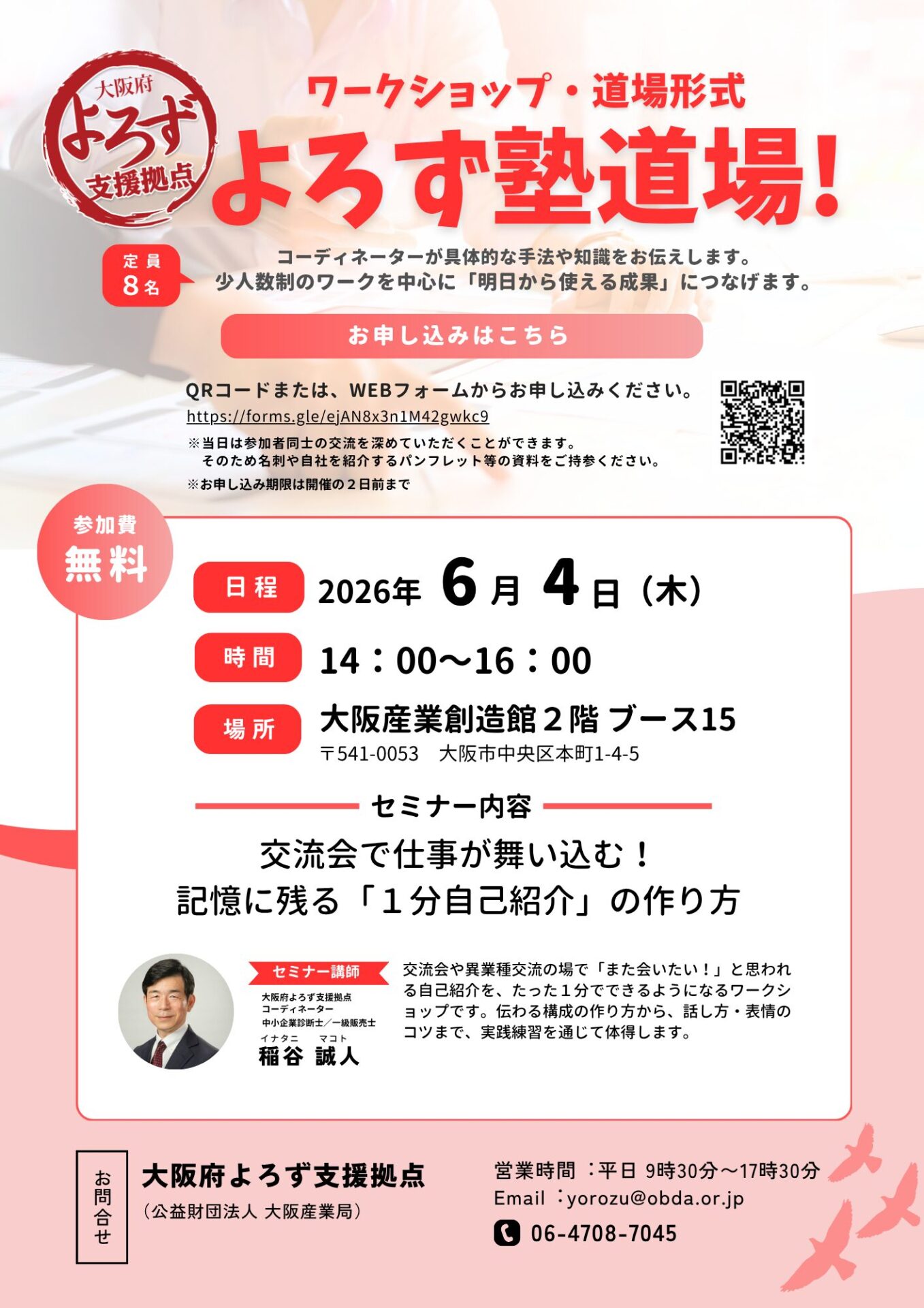 大阪府よろず支援拠点 TEL:06-4708-7045 Email:yorozu@obda.or.jp